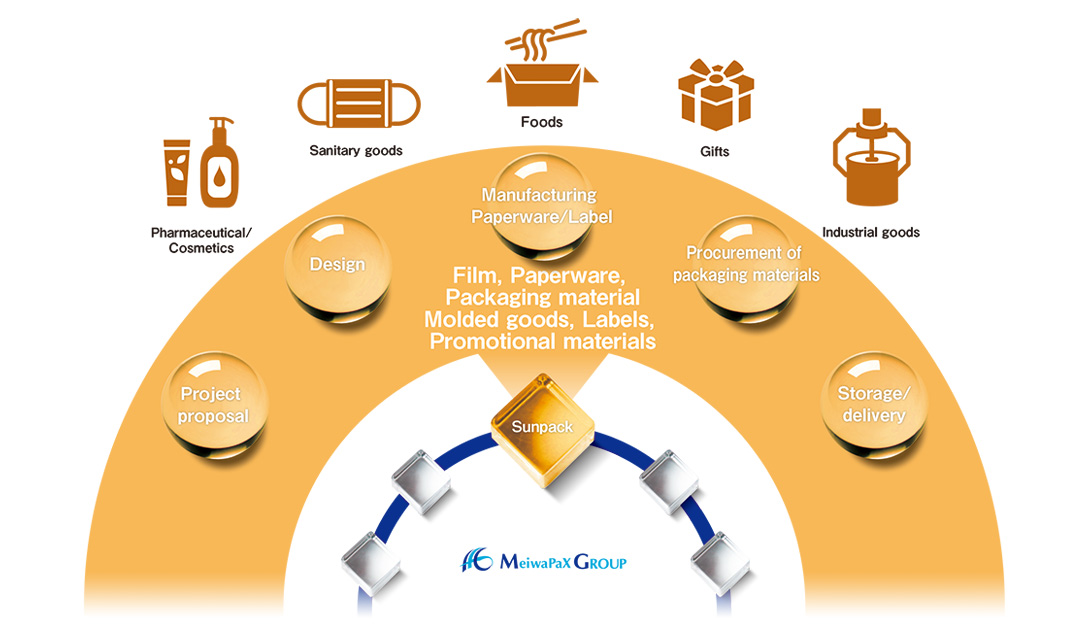 The comprehensive ability that can support you from all sorts to customer's request is the value provided by Sunpack. We are involved in the business of customers such as Fukuoka Prefecture, whole area of the Kyushu and the metropolitan area, we are starting with support from intangible side of marketing, careful planning, ingenious design and design, to identify the market, we are contributing to solving problems in total by supporting tangible side such as providing high quality packages and effective sales promotion materials. Especially since we are deeply associated with food processing manufacturers, we have plentiful information on what kind of packaging is necessary for this food, what kind of consideration is necessary for logistics, and its know-how can be relied on by customers. In addition, in paperware and label manufacturing, we have a system that allows us to produce in-house, so we are able to provide products that customers want, at the necessary time. While abundant information is set as its own weapon, we respond to every request in detail and realize a satisfactory business.