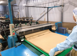 お客様のニーズに対して柔軟に対応するサンパックでは、必要に応じて設備を導入することも検討。例えば海苔加工メーカー様が必要とされる特殊な大型アルミ袋を速やかに供給するため、これまでは人手で行っていた作業を自動化する製袋機を導入するなどしています。